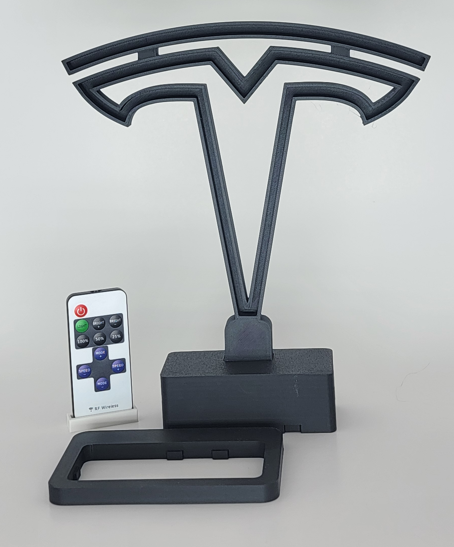 1x T Light with USB C port, 1x Power brick, 1x Remote with battery, 1x Base adapter